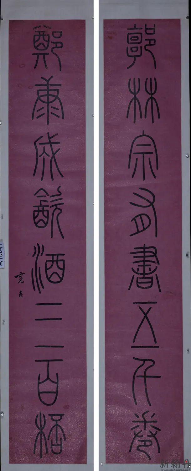 千卷百杯八言联洪亮吉(1746-1809)纸本 小篆纵167.2厘米 横29.2厘米郭林宗有书五千卷, 郑康成饮酒三百杯。洪亮吉(1746-1809),初名洪莲,字君直,小字稚存,别号北江、更生居士,江苏阳湖人,祖籍安徽歙县。榜眼,授翰林院编修。善书工文,学术长于舆地。为近代人口学说之先驱。.....
