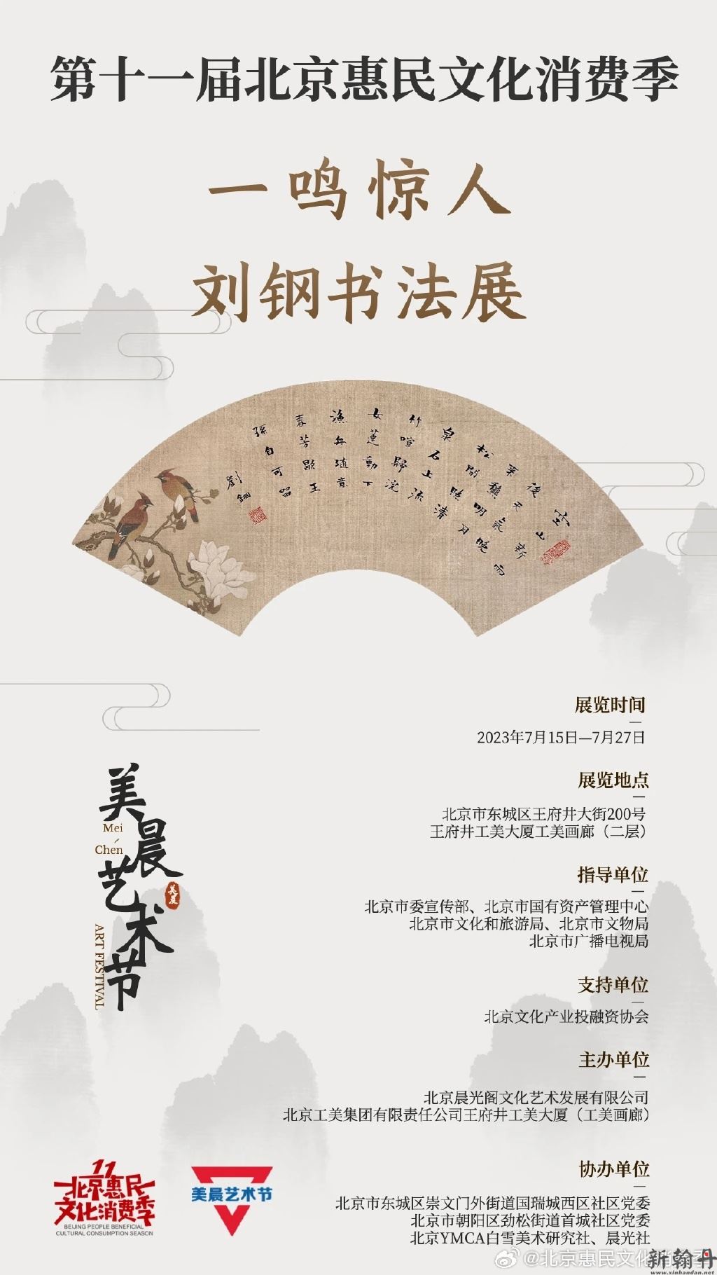 艺术京城|「美晨艺术节展讯」一鸣惊人·刘钢书法展将于7月15日在北京王府井工美大厦工美画廊启幕美晨艺术节作为第十一届北京惠民文化消费季艺术京城版块的重要活动之一,将于2023年7月15日至7月21日举办“刘钢书法展”,本次展览展出刘钢先生书法作品四十余件,形式多样、内容丰富,敬请期待! .....
