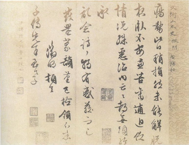 明 文徵明《苦疡帖》。释文:疡势比日稍损,然未能解脱,夜卧不安,兼苦旧逋迫促,情况殊恶。治内云云,都无头绪。承记念谆谆,独有感藏而已。发还篆韵,堇(谨)已检领,不悉。徵明顿首。子传先生至孝。...