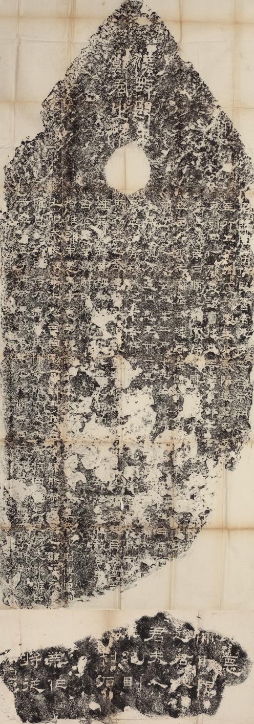 延光残碑又称“都官是吾碑”,东汉延光四年刻,康熙六十年(1721)山东诸城超然台故址出土。书体篆隶结合,风格茂密朴厚。纵:104厘米,横:53.5厘米。此为清出土初拓本,首行“是”字左上角稍损,末行“延光”上之“元”字完好。黄易鉴藏,钤“小松所得金石”印。碑立于汉延光四年(125年)。书体非隶非篆,似符印之字,屈.....
