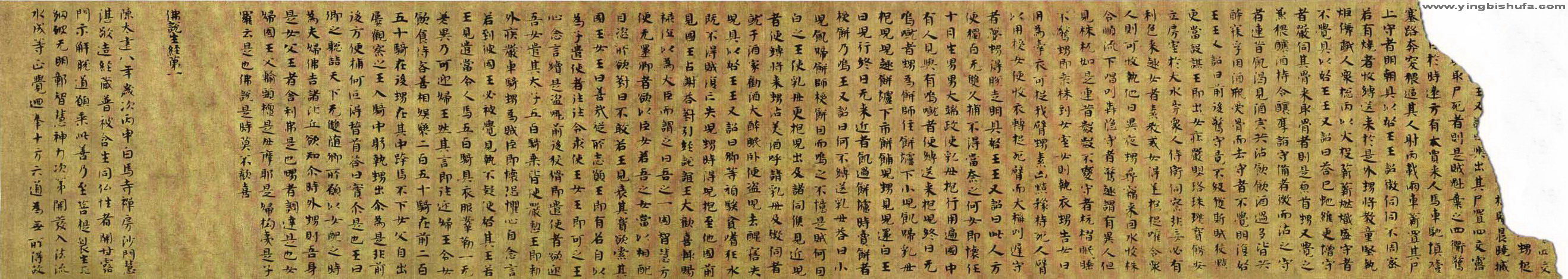 《佛说生经》残卷,由释慧湛书于南朝陈宣帝太建八年(公元576年)。释慧湛为南京白马寺僧,本经由南京传至敦煌。因其书法佳绝,为主人宝藏,直至1002年被埋于莫高窟藏经洞。九百年后王道士发现秘密,遂开洞出经,陆续盗卖。此残卷现藏法国国家图书馆。.....