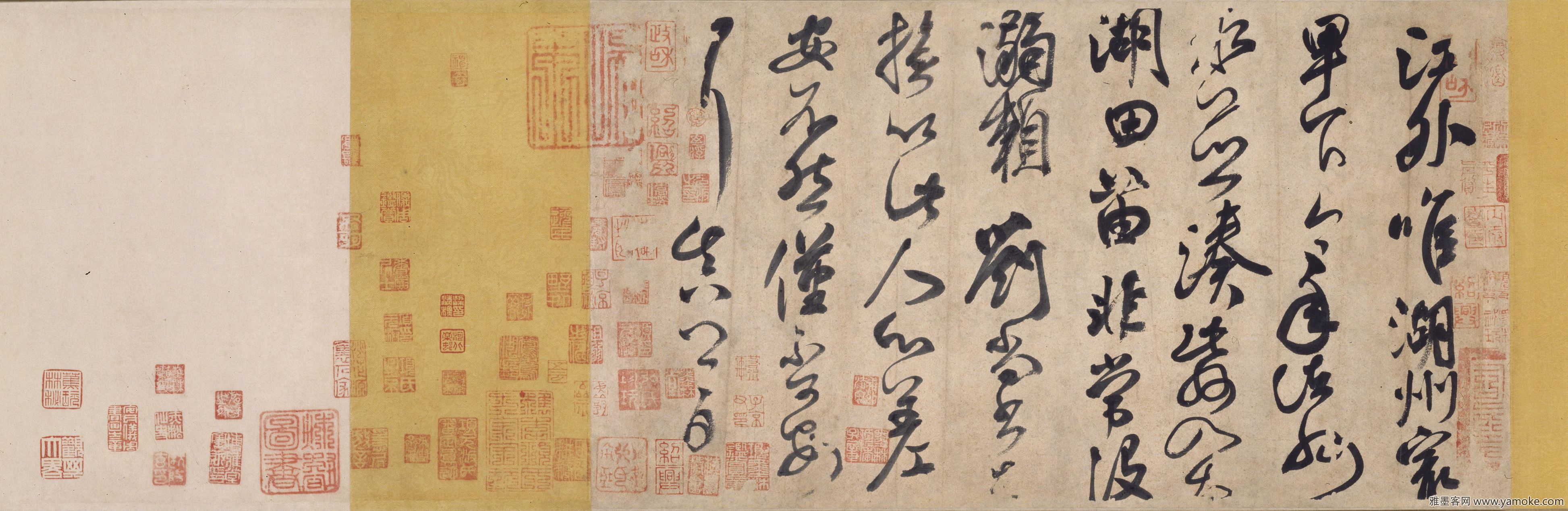 颜真卿《湖州帖》(宋仿本),北京故宫博物院藏本。纸本,纵27.6厘米,横50.2厘米。是帖无书写年月。颜真卿《湖州帖》释文:江外唯湖州最卑下,今年诸州水并凑此州入太湖,田苗非常没溺。赖刘尚书□抚,以此人心差安,不然,仅不可安耳。真卿白。此帖为传颜真卿所书的一通信札,讲述湖州地区发生水灾,百姓得到安抚.....
