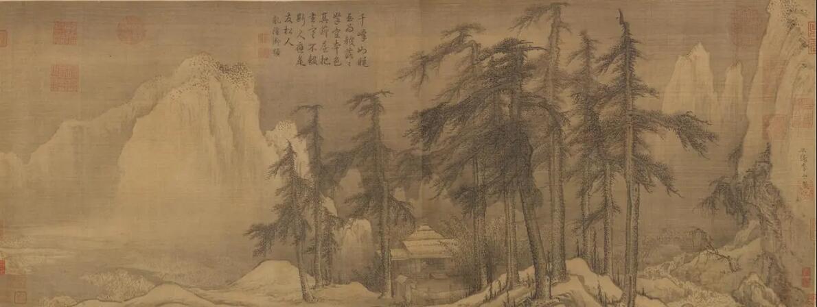 《金李山风雪松杉图》是中国金朝画家李山创作的一幅中国古画。原为民间收藏,现藏于美国弗利尔美术馆。本图为金李山风雪松杉图王庭筠《金李山风雪松杉图卷跋》,(画)29.7×79.2cm,(全幅)31.2×1003.4cm。墨迹纸本,共十一行,六十字。现藏美国。王庭筠书法宗米芾,行笔疾速,富于变化。但不尽是米芾的风格,有他其自身.....