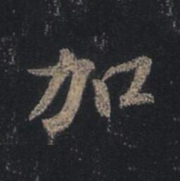 1.形扁方字适中,行楷写法。2.左边“力”的横折钩的折亦方亦圆,出钩含蓄。3.右边“口”写得流畅,左下角不封口。4.注意:本来是个方形字而写成扁方形,也很美观耐看字:加 书法家:王羲之 作品:圣教序...