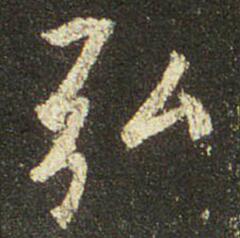 “弘”字在此帖中出现4次,选取.其中两个进行分析,写法略有不同。1.第一种写法[图1 ]①形长字适中。②左边“弓”第一个横折较大,第二、三个横折连写且较小,圆转用笔。③右边“厶”与左边“弓”比较,写得相对小些,且位置安放很精细,形状似上合下开。2.第二种写法[图2 ]①形方字偏小。②主要是把右边的“厶” 写成“口.....