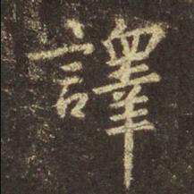 选取圣教序帖中两个“譯”字进行分析,总的来看,两个字写法大体相似,都属楷书写法。现综合起来一起分析。1.形长字大,左边小,右边大。2.左边“言言” 字旁突出第一横, “口”字写得较随意。3.右边“睾”笔画有增加,上面增加了一撇,下面增加了一横。4.细节:右边“罩"下面一竖是悬针竖。字:译 书法家:王羲之 作品:.....