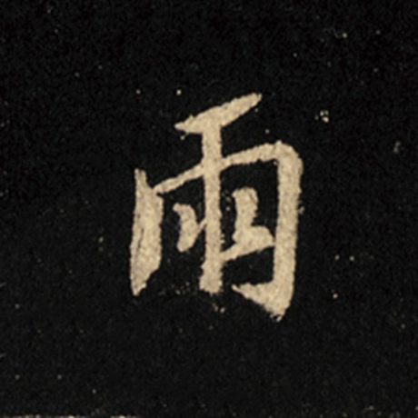 “慶”字在此帖中出现3次,有两种写法,都属草书写法。另一个字已不太清晰。1.第一种写法[图]①形方字偏大,用笔较重。此字与“麼”字参照,笔画有减省,②“广”字旁写法:点是圆点,横撇连写,撇的收笔向左上回锋。注意撇似乎是一个斜竖,斜度较大。③“广”里面的内容简写成三部分:上面写成类似“卄”,中间写成横钩,下.....