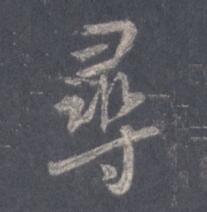 选取帖中两种不同写法的“尋”字来进行分析。1.第一种写法[图 ]①形长字大,写得圆融。②上部“彐”是楷法。③中间部分要注意。A.左边“工”一笔写成,收笔向右上挑笔出锋,接着写右边的部分。B.右边“口”是草书写法:左竖写得较长,收笔回锋至上端,连写出横折折撇。④下面“寸”字写得很有味道。A.横向右上斜度大。B.最后.....