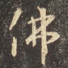 选取帖中不同写法的两个“佛字进行分析。1.第一个“佛”字[图 ]①形扁方字适中。由于原碑浸蚀原因,笔画显示出金石味。②单人旁“亻”写法:撇重竖轻;竖写成一点,且不与撇连。③右边“弗”的写法:A.上面横折是方折,下面横折是圆转。B.中间两竖笔画细而有力。④细节:A.“弗”两竖呈相背之势,左短右长:右竖收笔处穿过下面.....