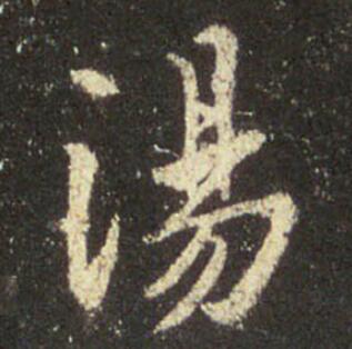 1.形偏长字适中。2.左边三点水“氵”写法,又是王书的一种变化。①上面一点是枣核横点。②下面两点写成竖钩,圆起方折,出锋锐。3.右边“易”也是王书的典型写法(如“揚”字等)。这里更倾向于楷书写法。4.细节:①左边“氵”的上点与下面竖钩基本在一条直线 上。②右边“易”,“日” 的最后一横,与“勿”上面的一横共用,.....