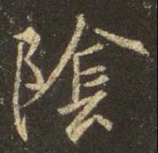 王书这个字非常美,是典型的行书形态。“陰”字在此帖中出现3次,写法大致相似。1.形方字适中,楷法结构,行书用笔。2.左耳刀“阝”,竖写成了弧竖,收笔向右上出锋,这一竖写得很有弹性和力度。3.右边部分:①上面“人”字头,撇写得飘逸,深人到“阝”里面,捺写成驻锋捺,也是王书的典型用笔;撇、捺收笔处左低右高。②“.....