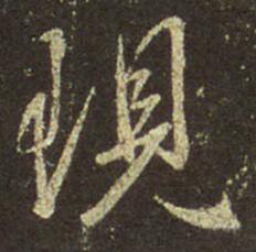1.形方字适中。2.左边“王”字旁的写法是王书的特有形态之一,要掌握。①最好分三笔写较为合理:横折→横折→提。②第一个横折收笔向左出锋,映带第二个横折。3.右边“見”写得连贯。①中间两横连写,靠左不连右。②底下一横与撇连写。③竖弯钩写成卧钩,而且出钩圭角明显。这一用笔细节要注意。4.细节:整个字穿插映带,很.....