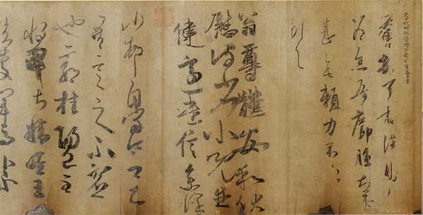 王荟《疖踵帖》、《翁尊体》 见于辽宁省博物院藏的《唐摹万岁通天帖》,唐摹本。