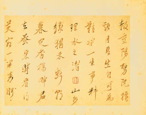 陈洪綬这件书蹟写於五十四岁(一六五一),一夜醉饮西子湖,有佳人侍候笔砚,在十六幅描写隐居雅趣的画前,题诗抒发感时伤暮的心境。这些清瘦、飘逸,像兰叶一般的撇笔与捺笔画,散发出细腻、优雅的气质。