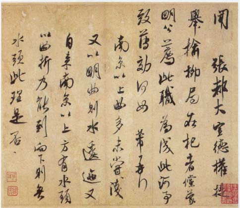 米芾《闻张都大宣德尺牍》,又称《河事帖》 行草书。纸本。纵29.4厘米 横33.8厘米