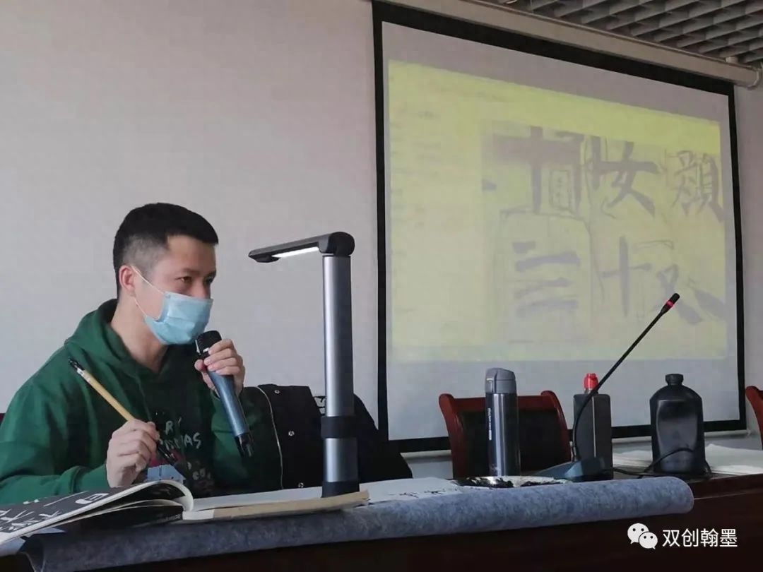 次日,高级讲师李春桥老师围绕帮助学员把握书法全局,系统讲解书法历史,侧重分析各种书体嬗变定型、创新发展过程,引导学员纵览书法历史长河,打破眼界、思维和知识的局限性;详细阐述历代各种经典书体名家名作,指导学员正确选择经典名帖临摹学习;对各种书体不同风格和字法、笔法、墨法、章法进行讲解演示,使学员们总体把握如何精准临摹、学习创作。他还布置作业,把所讲的内容提要和有关资料发到高研班群内,跟踪点评,及时指导。