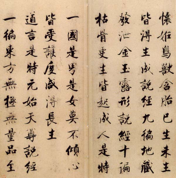 “度人经”全名为“太上洞玄灵宝无量度人上品妙经”。 册前有清乾隆帝行书“毫素通灵”四字,后有钱陈群题跋一段。