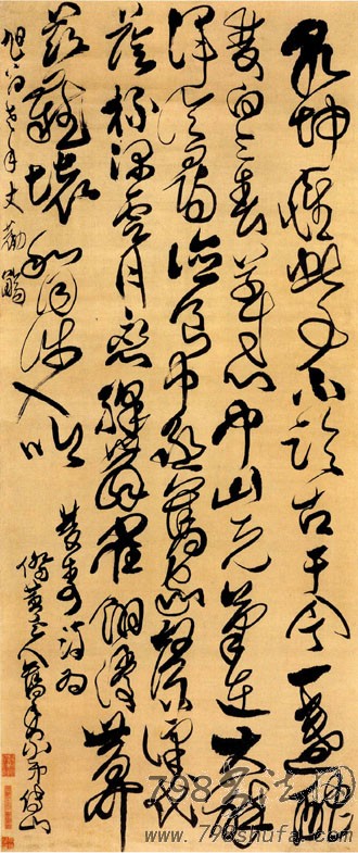 傅山《草书乾坤惟此事五言诗》轴 122.4x51.7cm 上海博物馆藏
