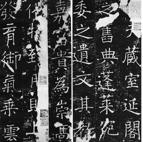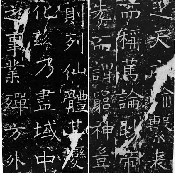 清 杨守敬:方整宽博,伟则有之,非用奇也,盖犹沿陈、隋旧格,登善晚年始力求变化耳。又知婵娟婀娜先要此境界。(《平碑记》)