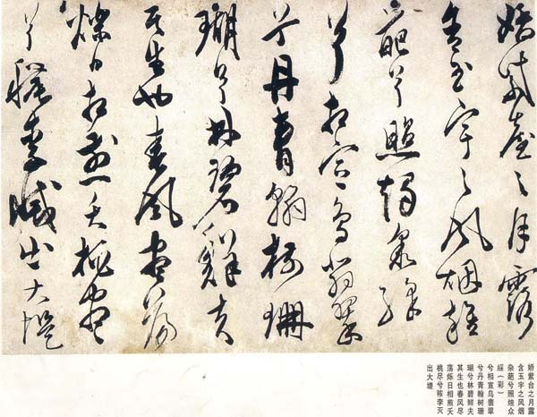 (前缺:若夫西城秘掖,北禁仙流,见白露之先降,悲红蕖之已秋。昔之菡)萏齐秀,芳敷竞发,君门闭兮九重,兵卫俨兮千列。绿叶青枝,缘沟覆池,映连旗以摇艳,辉长剑兮陆离。疏兮裂,交流兮相沃,四绕兮丹禁,三匝兮承明。晓而望之,若霓裳宛转朝玉京;夕而察之,若霞标灼她虎赤城。既如秦女艳日兮凤鸣,又如洛妃拾翠兮鸿惊,足使瑶草罢色,芳树无情。复道兮诘曲,离宫兮相属,飞阁兮周庐,金铺兮璧除。君之驾兮旖旎,莲之叶兮扶疏,万乘顾兮驻彩骑,六宫喜兮停罗裾。仰仙游而德泽,纵元览而神虚,岂与夫溪涧兮沼,自生兮自死,海圻兮江沱,万里兮烟波。泛汉女,游湘娥,佩鸣玉,戏清涡,中流欲渡兮木兰楫,幽泉一曲兮采莲歌。江南兮岘北,汀洲兮不极,既有芳兮莎城,长无依兮水国。岂知移植天泉,飘香列仙,娇紫台之月露,含玉宇之风烟。杂葩兮照烛,众彩兮相宣,乌翡翠兮舟青翰,树珊瑚兮林碧鲜。夫其生也。春风昼荡,烁日相煎,夭桃尽兮李灭,出大堤兮艳欲然。夫其谢也,秋灰度,金气腾天,宫槐疏兮井桐变,摇寒波兮风飒然。归根息艳兮八九月,乘化无穷兮千万年,越人望兮长已矣,郑女采兮无由缘。何深蒂之能固?何香之独全?别有待制扬雄,悲秋宋玉,夏之来兮玩早红,秋之暮兮悲馀绿。礼盛燕台,人非楚材,雾图兮兰为阁,金银酒兮莲作杯。落英兮徘徊,风转兮衰颓,入黄扉兮洒锦石,萦白苹兮覆绿苔。寒暑茫茫兮代谢,故叶新花兮往来,何秋日之可哀?托芙蓉以为媒。