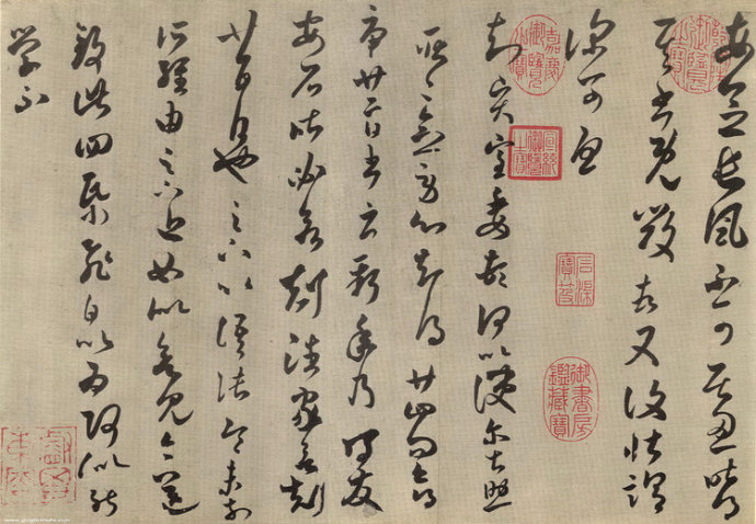 长风帖 临摹本, 纸本。纵27.5厘米,横40.9厘米。11行,102字。草书。台北故宫博物院藏。《长风帖》又分称《长风帖》、《贤室委顿帖》、《四纸飞白帖》 。