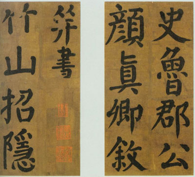 又称 《竹山潘氏堂联句》。此帖著录首见《宣和书谱》。为颜氏与诸友人于竹山堂作诗联句。书法端严浑厚,虽乏颜书磅礴之势,但楷则犹存。有“绍兴”、“缉熙敬止”、“希世之书”、 “御府之印”、“容斋清玩”、“晋府图书”、“ 玉张氏”、“王世懋印”、“ 苍严”、“安仪周家珍藏”、“铁保私印”、“叶公绰”等鉴藏印。帖前有标签“ 颜鲁公竹山连句诗帖”。帖后有宋米友仁、清姚鼐、铁保三家题跋。曾经南宋高宗 绍兴内府、明晋王府、清梁清标、安歧等收藏。明王世贞《 州续稿》、清安歧《 墨缘汇观》等著录。