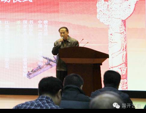 应国家开放大学领导的邀请,我今天来出席这个仪式,感到非常高兴。以上看了国开大学书画艺术教育研究院书法学院成立的汇报片,听了各位领导的讲话,我深受感动,心灵受到强烈地震撼!我为国家开放大学,为所有关心支持这一活动的单位和个人,为发起这个活动的蔡民基先生点赞!同时,我想借这个机会表达几句心里话:
