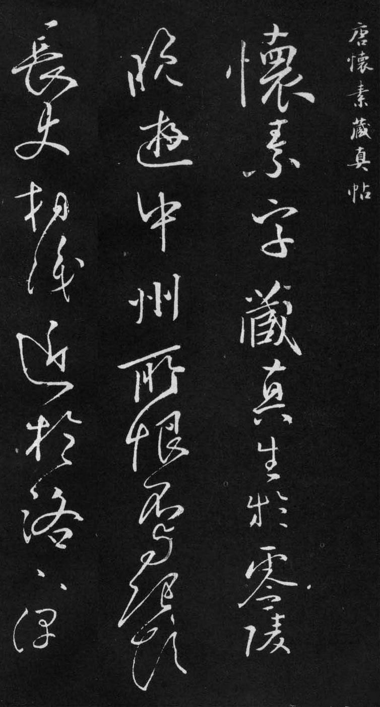 释文:怀素,字藏真,生于零陵,晚游中州,所恨不与张颠长史相识,近于洛下,