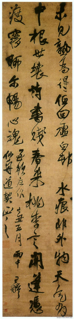 王铎 至顿庄作 立轴 行书 绫本 220.6X48.7cm 浙江省博物馆藏