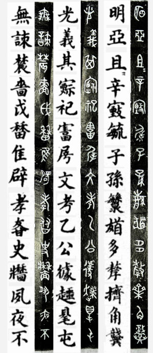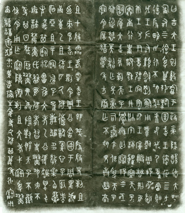 曰古文王,初和於政,上帝降懿德大,匍有上下,受萬邦。圉武王,遹征四方,達殷,民永,不鞏狄虘,伐屍童。憲聖成王,右剛,用肇徹周邦。康王,兮尹。宖魯邵王,廣楚荊。隹南行。穆王,井帥宇誨。寧天子,天子文武長刺,天子無匄。祁上下,亟慕,吳亡臭。上帝司夒,尣保受天子令,厚福豐年,方亡不窋見。青幽高且,才霝處。武王既殷,史刺且乃來見武王,武王則令周公舍,於周卑處。乙且,匹氒辟,遠猷心子。明亞且且辛,毓子孫,多孷,角光,義其祀。文考乙公,,屯無誎,辳嗇戉隹辟。孝史,夙夜不窋,其日蔑。弗敢抯,對揚天子丕顯休令,用乍寶彜。刺且文考,弋受爾。福褱錄,黃耇彌生,龕事氒辟,其萬年永寶用。
