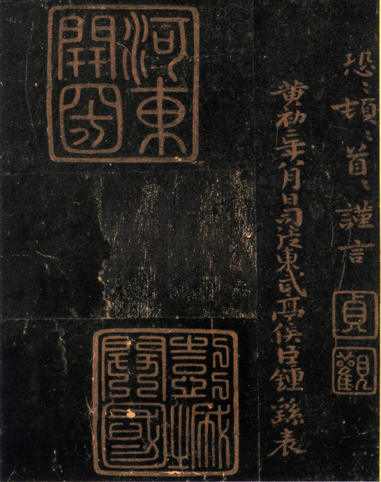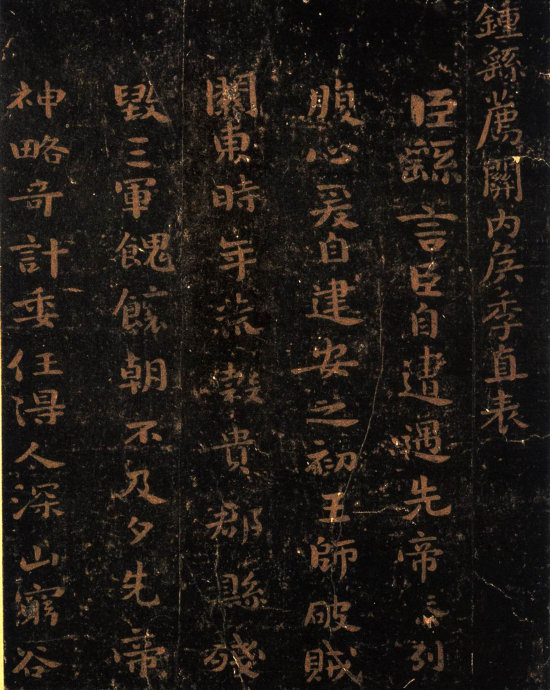 钟繇书于魏黄初二年(221),楷书,书时钟繇已七十高龄。此表内容为推荐旧臣关内侯季直的表奏。原墨迹本于1860年英法联军焚掠圆明园时为一英兵所劫。后辗转落入一收藏家手中,又被小偷窃去埋入地下,挖出时已腐烂。幸有一照片留存。明代刻入《真赏斋帖》,清代刻入《三希堂》,列诸篇之首。