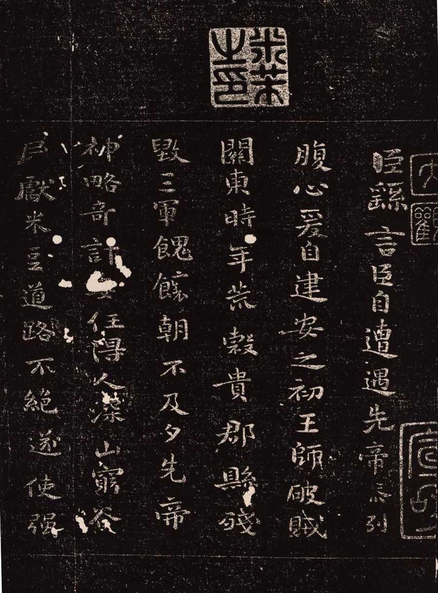 这件直传到清宫廷,又曾刻入《三希堂法帖》,至今下落不明。另一件为《唐褚遂良书倪宽赞》,至今还是故宫博物院的法书珍藏。两件墨迹,十四世纪以后,一直流传在民间,又多次为汇帖所摹刻,流传颇广,特别是《荐季直表》。”