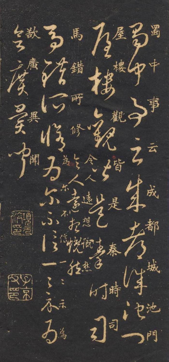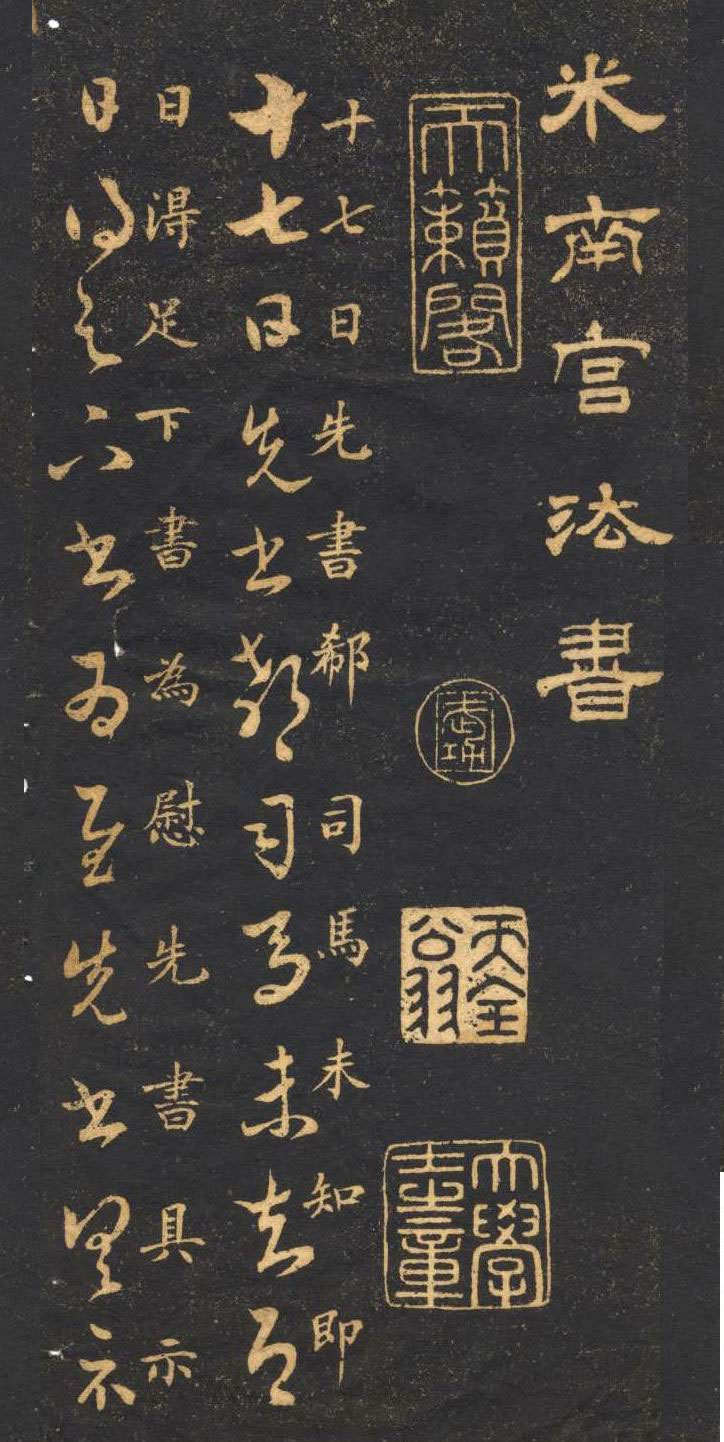 米南宫(1051-1107)即米芾,中国北宋书法家,画家,书画理论家。吴人,祖籍太原。天资高迈、人物萧散,好洁成癖。被服效唐人,多蓄奇石。世号米颠。书画自成一家。精于鉴别。曾任校书郎、书画博士、礼部员外郎。善诗,工书法,擅篆、隶、楷、行、草等书体,长于临摹古人书法,达到乱真程度。