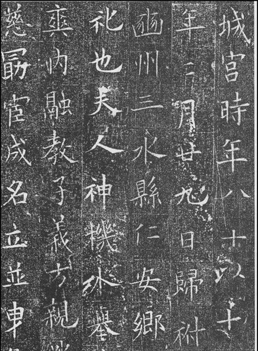 依据墓志所述,窦娘子卒于贞观六年,归祔于贞观十一年。由此可断,此墓志书写时间也应在贞观六年至十一年这五年间,也就是欧阳询76-81岁间。然此间欧阳询所书的楷书作品则有《九成宫醴泉铭》、《张崇碑》、《温彦博碑》、《阴符经》等,均属晚年“人书俱老”的纯青之作,笔法精熟,结字严谨,气质老成。而《窦娘子墓志》所呈书迹虽酷似欧书,然通篇气质韵味却显得异常“稚嫩”,无法与此间所书的《九成宫醴泉铭》、《温彦博碑》等同日而语。《窦娘子墓志》是否为欧书有待进一步考证。