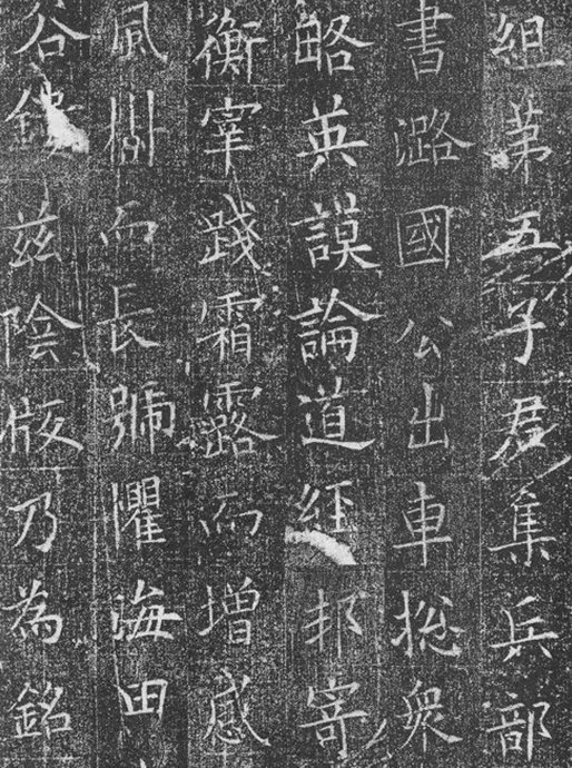 墓志之引人关注处乃是其书法风格颇类欧阳询手笔,结体右倾,字形瘦长,锋棱外露,险峻刻厉,特别是“礼、光、克、绝、已、九、也、兆”等字的“乙”法,“考、野、乎、丁”等字皆表现为隶书的兼方带圆的用笔特式,俨然是“骨秀神清、森森焉若武库之矛戟”的欧书面貌,尤其与《仲尼梦奠帖》《卜商帖》《张翰帖》《千文帖》及《皇甫诞碑》最为形神相似,而与腴润有致、浑穆高华、点画工妙、意态精密的《化度寺故僧邕禅师舍利塔铭》与《九成宫醴泉铭》等略不相合。所以从书写时段与风格考察,多显纤软稚嫩面貌,少见精熟老成气象,或缘摹刻不佳而不尽爽惬,如“义”字过于欹斜,“山”字中竖、“礼”字“乙”笔,皆有起笔纤软的感觉,疑是传承欧书衣钵之高手所为,恐非率更亲笔(《书法丛刊》二○○七年第三期考为欧阳询所书)。然而即便如此,其书法仍不失为初唐楷书的上品,且可以作为研习欧书的良好摹本。