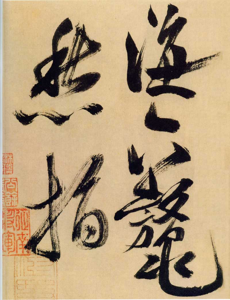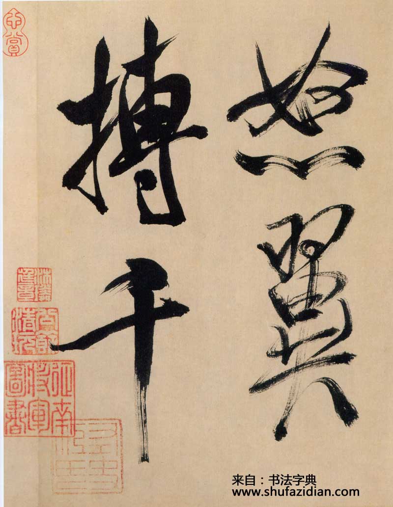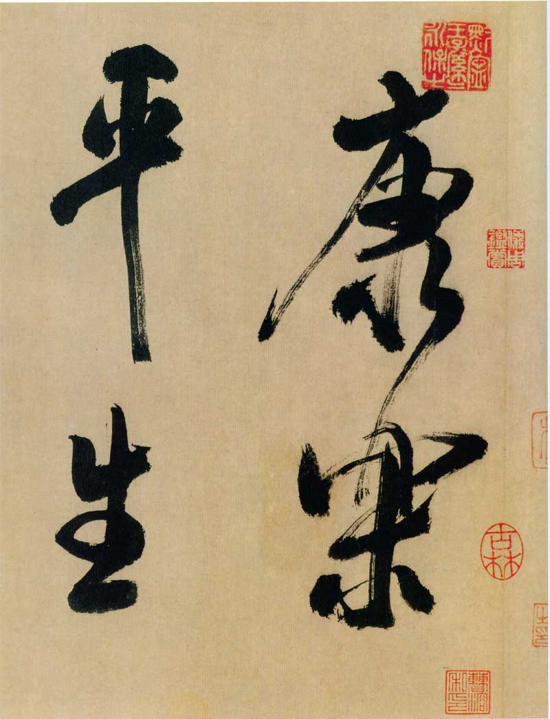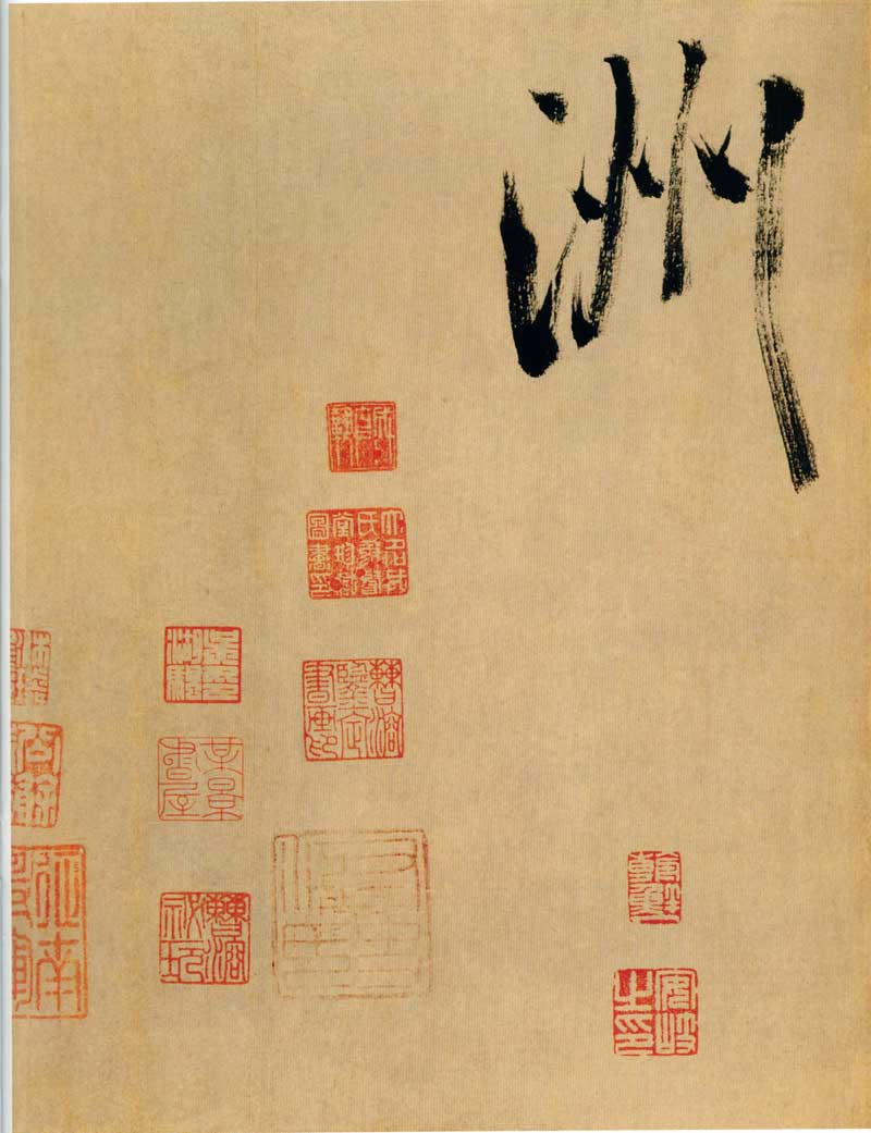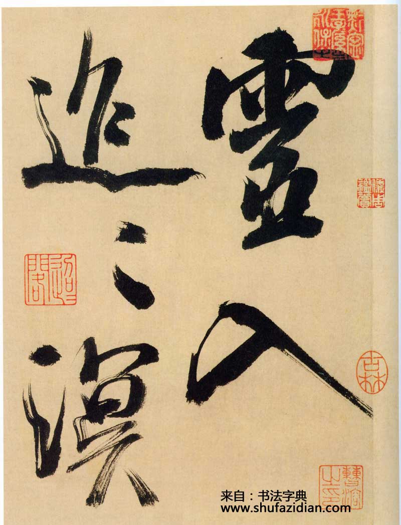 《多景楼诗册》是米芾晚期大字作品,与他30来岁时创作的《吴江舟中诗》比较,明显用笔老辣、厚重,间架欹侧中见稳健,极为豪放,笔力雄伟。面对《多景楼诗册》,可以想象出米芾挥毫时“神游八极,眼空四海”的气魄。他自称“刷字”的运笔方式在此册中表现得极为明显,许多笔画的起笔呈现散开的锋毫。一些竖笔、撇笔因运行急速而留出飞白。整幅作品气势豪迈,跌宕的笔画间蕴涵着巨大的张力。