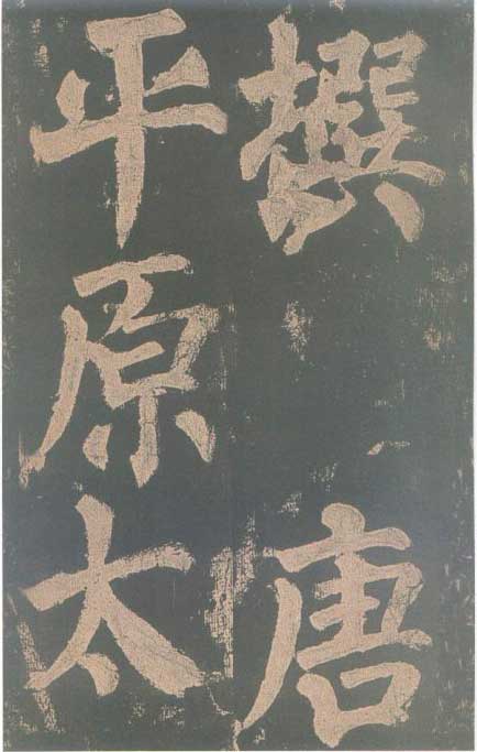 《东方画赞》碑文字体平整峻峭,深厚雄健、气势磅礴,为颜氏四十五岁盛年时之作。是临习颜体大字的最佳范本。