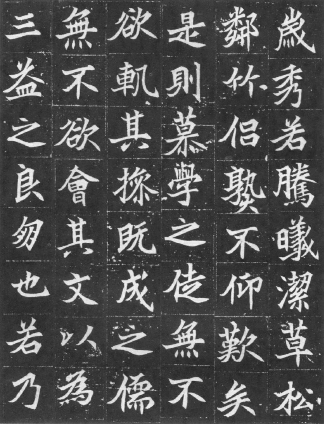 《元显儁墓志》的书法是北魏墓志书法中的精品。该志书法用笔中侧锋兼用、方圆皆备、爽洁峻利、秀润严整。结体大体呈左低右高之势,精紧茂密、秀逸多姿,极富韵致。兼有帖学书法的飞动妍丽和碑学的茂密豪宕。在众多的墓志显得丰姿特秀、独具风神。但因用笔结字多以侧媚取势,稍有“左秀右枯”之感。虽不及《崔敬邕墓志》之变化,而整链可喜。