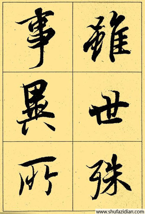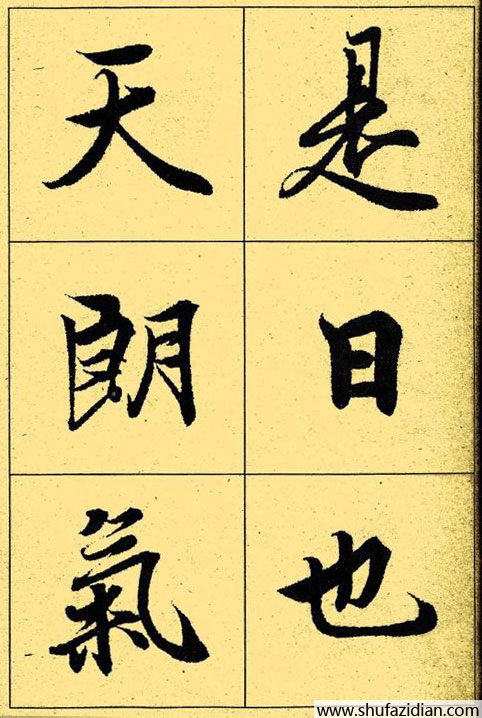 王羲之从小爱好书法。幼年时他曾跟随姨母,著名的女书法家卫夫人学过书法。渡江后,他又学习了前辈书法大师李斯、曹喜、张芝、张昶、蔡邕、锺繇和梁鹄等人的书法。这使他的书法融合各家所长,自成一家。再加上他的家族中擅长书法的人济济一堂,父辈王导、王旷、王异等都是高手,这对他的书法学习的帮助也是极为显着的。 王羲之对真书、草、行诸体书法造诣都很深。他的真书势形巧密,开辟了一种新的境界;他的草长浓纤折衷;他的行书遒媚劲健。人们称他的字"飘若浮云,矫若惊龙";"龙跳天门,虎卧凰阁"。