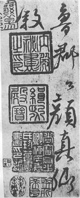 书于大历七年(772年)。拓本。行书,序文。35.6×16.5厘米。凡22行,计159 字。浙江省博物馆藏南宋留元刚《忠义堂帖》本。真迹著录首见宋米芾《书史》,系颜真卿送刘太冲西游时所作。刘太冲为颜真卿天宝末年平原旧友,广德元年吏部属吏,宣城陈留人萧颖士子弟,刘太真之兄。据米芾《书史》记载,此帖真迹原为王钦臣故物,后为唐所得,将其中“ 才不偶命,而德其无邻”一行字剪去,而《忠义堂帖》却依然留存。此序首末皆有缺字,可见当时真迹就已经损泐。《忠义堂帖》起首所缺“刘太冲者彭”五字,由朱笔小字校补,序末也有朱笔题跋六行,均为清人孙承泽手笔。