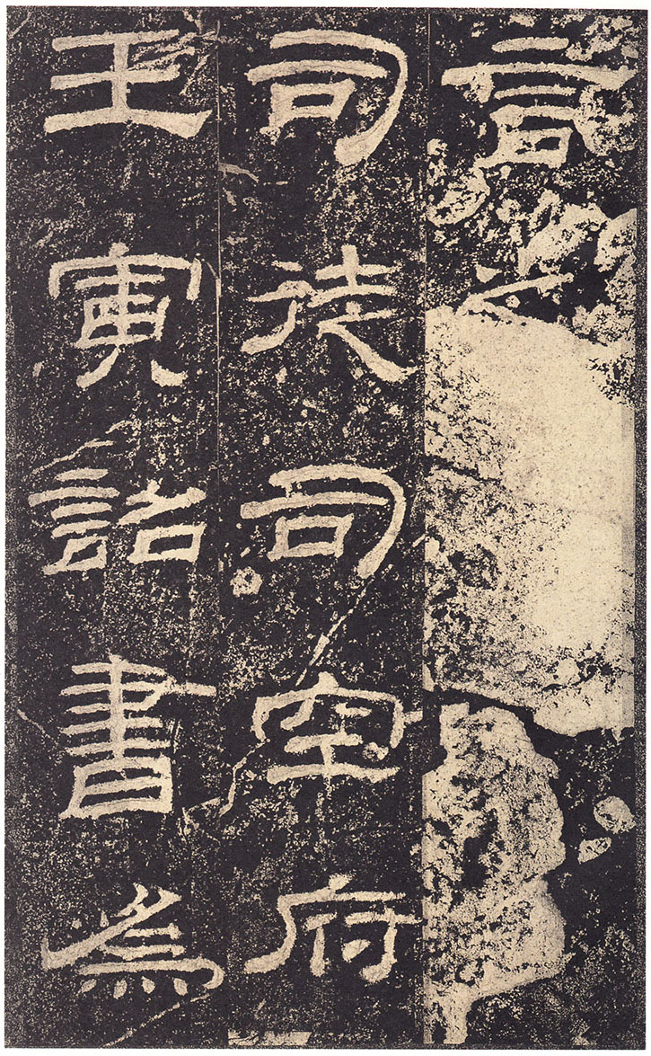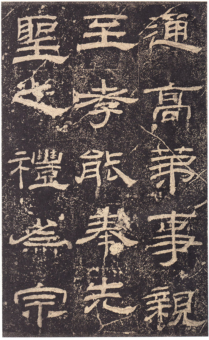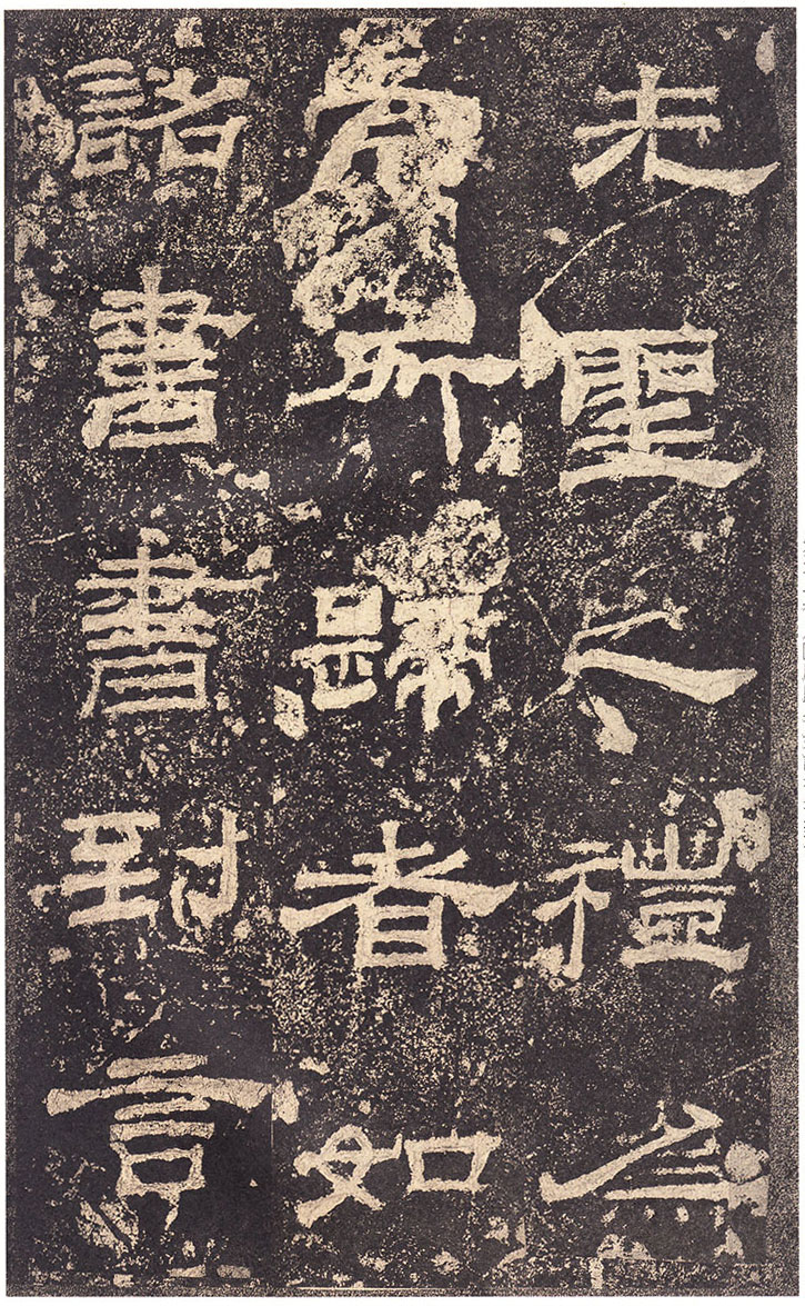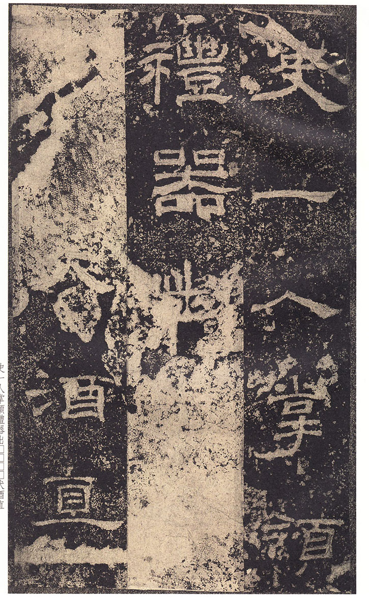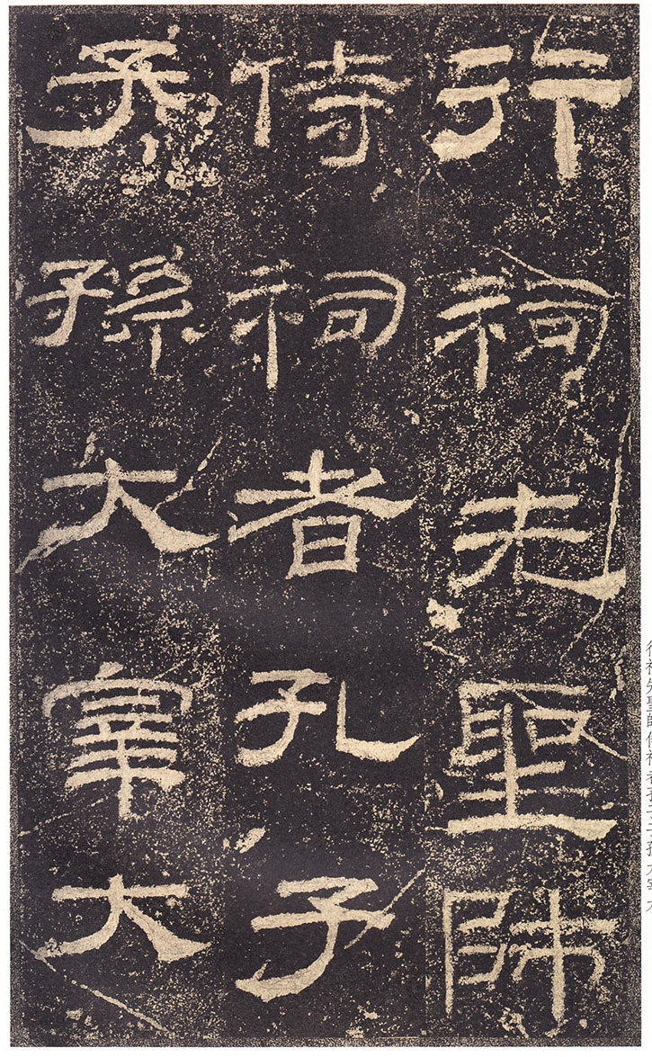 司徒臣雄,司空臣戒,稽首言,魯前相瑛書言,詔書崇聖道,勉□〔藝〕,孔子作春秋,制孝經,□□五經,演易〔繫〕辭,經緯天地,幽讚神明,故特立廟,成四時來祠,事已即去,廟有禮器,無常人掌領,請置百石□□一人,典主守廟,春秋饗禮,財出王家錢,給犬酒直,須報,謹問大常,祠曹掾馮牟,史郭玄辭對,〔故事辟〕□〔禮〕未行,祠先聖師,侍祠者,孔子子孫,大宰,大祝令各一人,皆備爵,大常丞監祠,河南尹〔給〕牛〔羊〕彖□□□各一,大司農給米祠,臣愚以為,如瑛言,孔子大聖,則象乾,為漢制作,先世所尊,祠用眾〔牲〕,長□〔備〕□,〔今欲〕加寵子孫,〔敬〕恭明祀,傳於罔極,可許,臣請魯〔相〕為孔子廟置百石卒史一人,掌領禮器,〔出〕□□□,□〔犬〕酒直,他如故事,臣雄、臣戒、愚戇惶恐,頓〔首〕頓首,死罪死罪,臣稽首以聞。 制曰可, 〔司徒公〕河〔南〕□□□□〔字〕季高元嘉三年三月廿七日壬寅奏雒陽宮 司〔空公〕蜀〔郡成都〕□〔戒〕字意伯 元嘉三年三月丙子朔,廿七日壬〔寅〕,司徒雄,司空戒下魯相,承書〔從〕事,下當用者,〔選其年〕〔以〕□,經通一藝,雜試通利能奉弘先聖之禮,為〔宗〕所〔歸〕者,如詔書,書到言:永興元年六月甲辰朔十八日辛酉,魯相平,行長史事,守長〔擅〕,叩〔頭〕死罪,〔敢〕言之,司徒司空府壬寅詔書,為孔子廟置百石卒史一人,掌主禮器,選年以上,〔經〕通〔一〕藝,〔雜試能〕奉弘先聖之禮,為宗所歸者,平叩頭叩頭,死罪死罪,謹案文書,守文學掾魯孔龢,師〔孔〕憲,戶〔曹史孔寬等〕雜試,龢脩春秋嚴氏,經通高第,事親至孝,能奉先聖〔之〕禮,為宗所歸,除龢,〔補〕名狀如〔牒〕,平〔惶恐叩頭,死〕罪死罪,上司空府 讚曰:巍巍大聖,赫赫彌章,相乙瑛字少卿,平原高唐人,令鮑疊字文公,上黨〔屯〕留人,政教稽古,若重規〔矩〕,乙君察舉,守宅除吏,孔子十九世〔孫麟〕,廉請置百石卒史一人, 鮑君造作百石吏舍,功垂無窮,於是始□。
