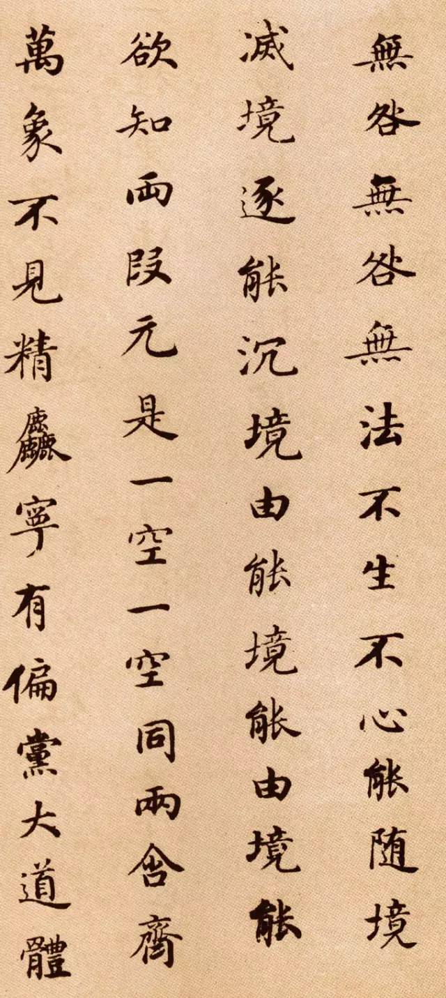 没错,这是董其昌楷书《信心铭》。 董其昌的书法,吸收古人书法的精华, 但不在笔迹上刻意模仿, 兼有“颜骨赵姿”之美。