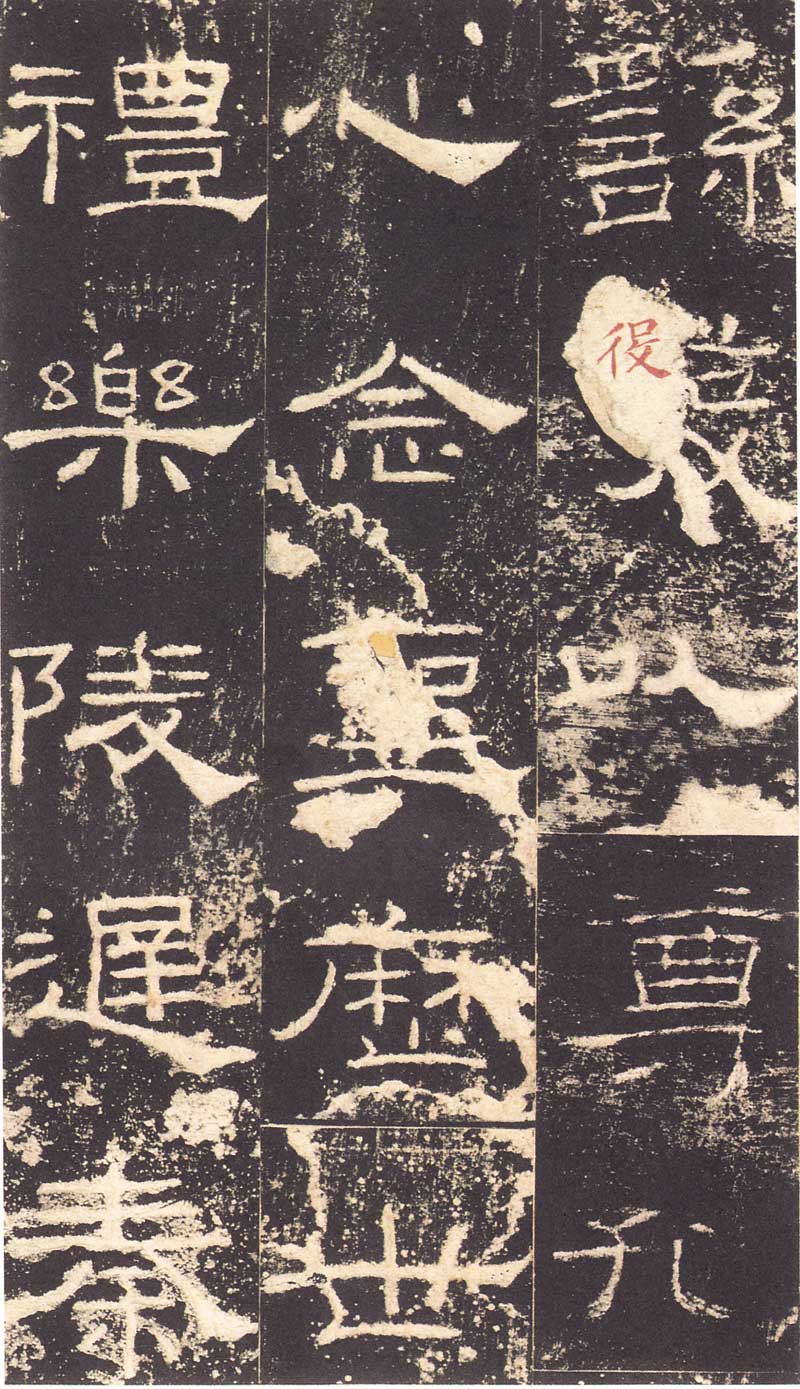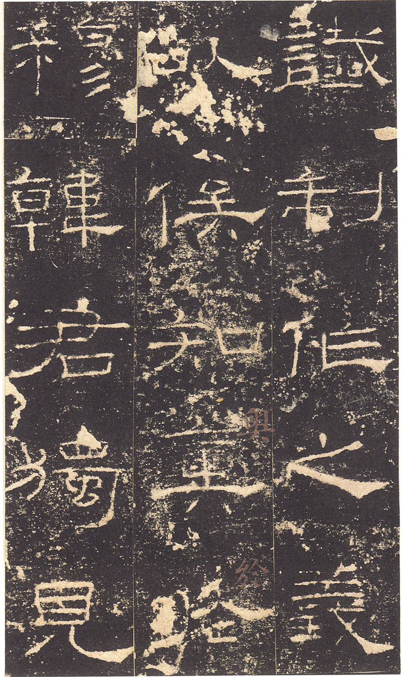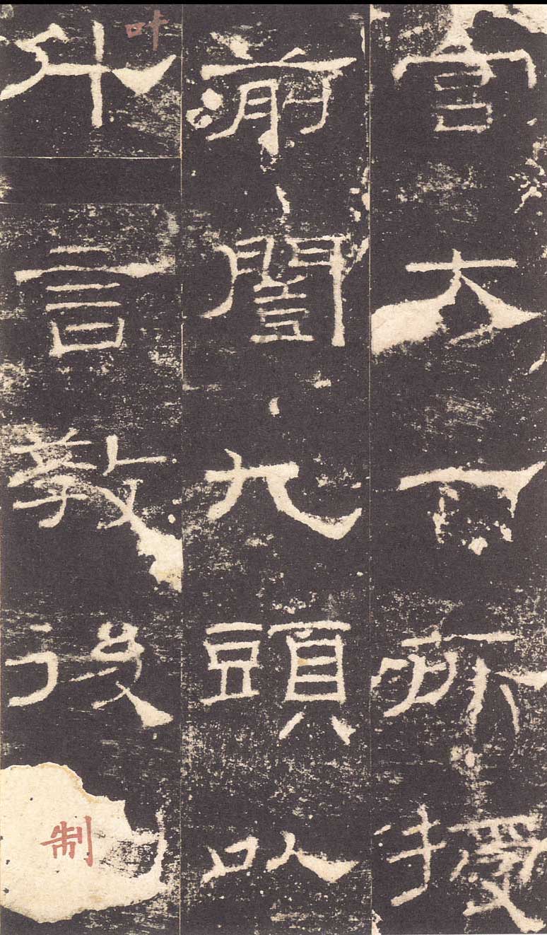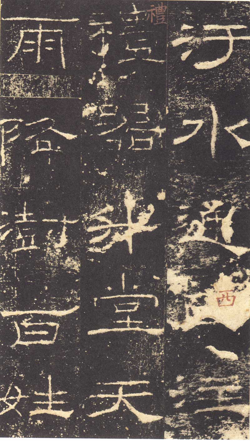 《礼器碑》所传拓本甚多。明拓断裂适当垂处,不遑写下一字,而引上脚使长,又与是碑“年”字不同。