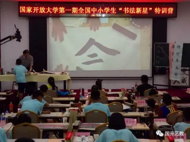 欢迎来自五湖四海的每位小学员和家长们。党的十八大以来,以习近平总书记为核心的党中央,把中华优秀传统文化置于人类共有精神财富的体系中,定位为人类共有的精神财富,智慧光芒穿透历史,思想价值跨越时空,这是中华民族发展之根,也是凝聚世界华人之魂。各位家长们放下手中工作,小学员们放弃休假、游玩的最好时机,冒着酷暑、千里迢迢来到北京参加特训营。这一方面说明了大家对国家开放大学的信任和特训营的认可,另一方面说明了大家对书法艺术的挚爱,表明了大家对中国传统文化的高度认可和传承中国传统文化艺术的社会责任。