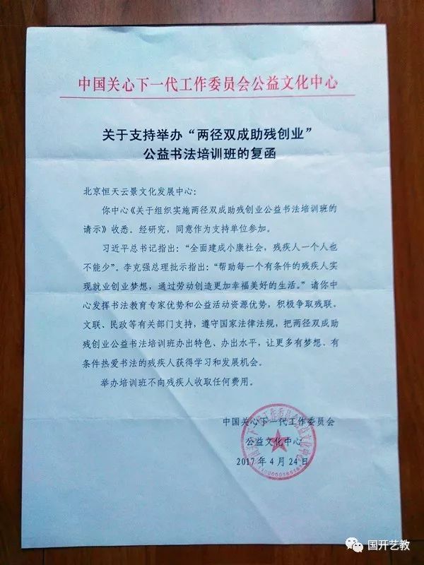 本文来源:助残创业 - - 助残自强 学书自立——中国书法“两径双成”教育将开启残疾人书法培训进程