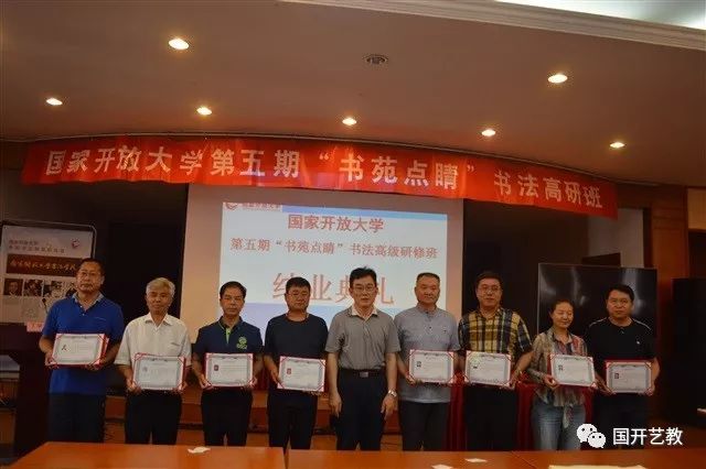 蔡民基院长在总结的基础上,向学员们颁布了国家开放大学“书苑点睛”书法高级研修班结业证书。