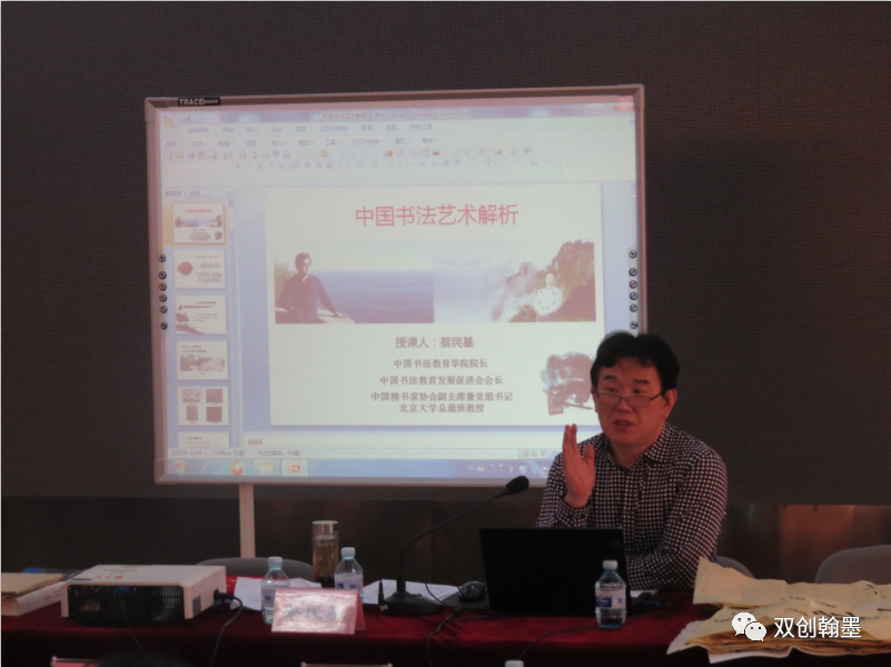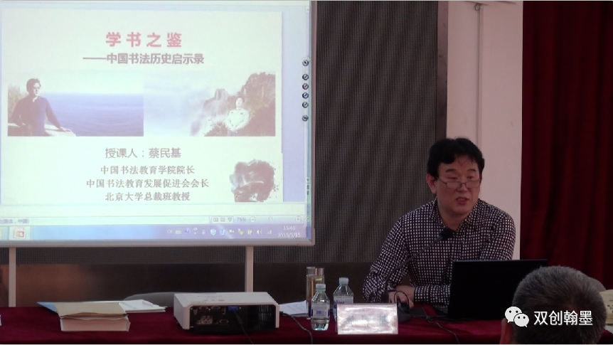 接着,蔡民基老师正式开讲。他首先深刻分析了“中国书法艺术及独特性”,然后以《书法之鉴》为题,走进中国书法历史梳“脉络”,跳出中国书法历史看“面目”,感悟中国书法历史得“启示”,把中国书法历史讲得活灵活现,具有很强势思辨性和感染力。尽管授课已经超下午六点,仍有许多学员说:“还没有听够呢,太精彩了!”