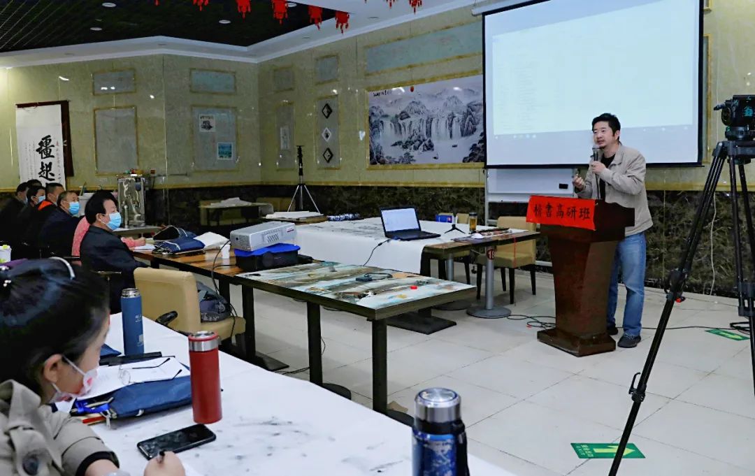 这次特邀请刘洪彪、卢中南、刘文华、杨广馨、赵宏、倪进祥、南华东、高炳山等名家导师授课指导,榜书教育培训中心蔡民基主任和陈晓老师也参与了教学。期间,特请兜底儿云(北京)文化创意传媒有限公司总裁、兜底儿网艺术总监高润祥举办了《当前书画市场现状和未来走势》的专题讲座,共同举行了“兜底儿网签约书画家”签约仪式,37名师生有幸签约。