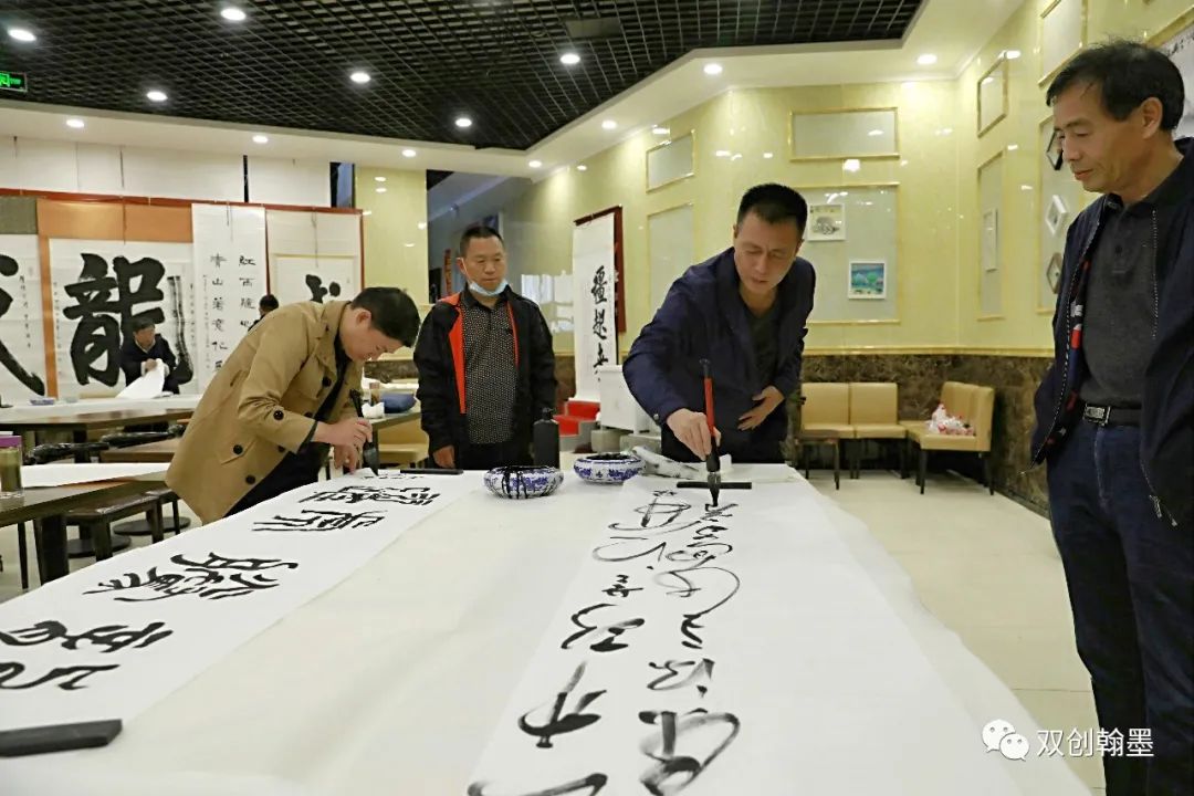 步入会场, 一幅长联映入眼帘,上面写着“ 培育榜书优秀人才,打造榜书精英团队”,说是振奋气势,不如说是我们榜书高研班有了新目标。这里聚集着长期积累研究并懂得爱与分享的书艺人才,有着不约而同、志同道合的亲切感。有文人气息,具书卷气。