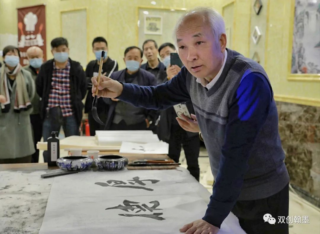 南华东导师正在传授几十年榜书创作经验